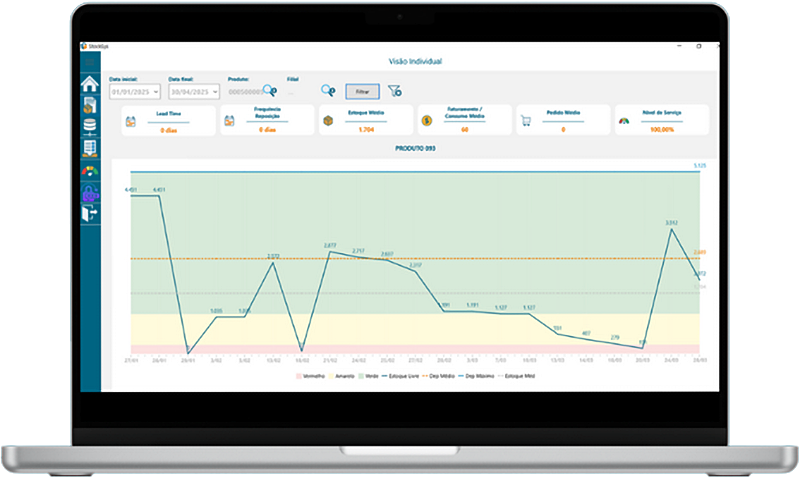 frequência de reposição e variação de vendas.